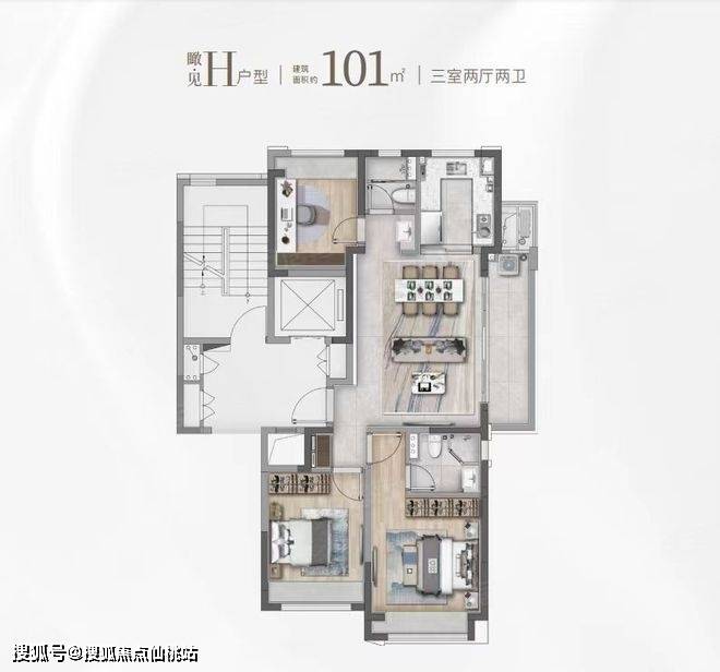 同样是3房2卫的配置,功能性与舒适度兼具。该户型惊艳的地方在于大尺度的景观边厅设计,搭配超大阳台,营造IMAX级别的客厅景观面,极具阔绰感!